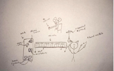 A duet for Bb clarinet (the mouse) and mixed percussion (the cat) inspired by the children’s cartoon Tom & Jerry. A cat & mouse stretch and yawn their way through their morning routines in relative peace and solitude until the cat stumbles upon a small hole in the wall, the humble abode of our good friend Mr./Mrs. mouse. From there, a quirky chase begins as the cat tries a variety of different methods to capture our playful, quick-witted, and jazz-loving mouse. Will our cat succeed? This being the cat’s 4,962nd go of it, all my money’s on the mouse.